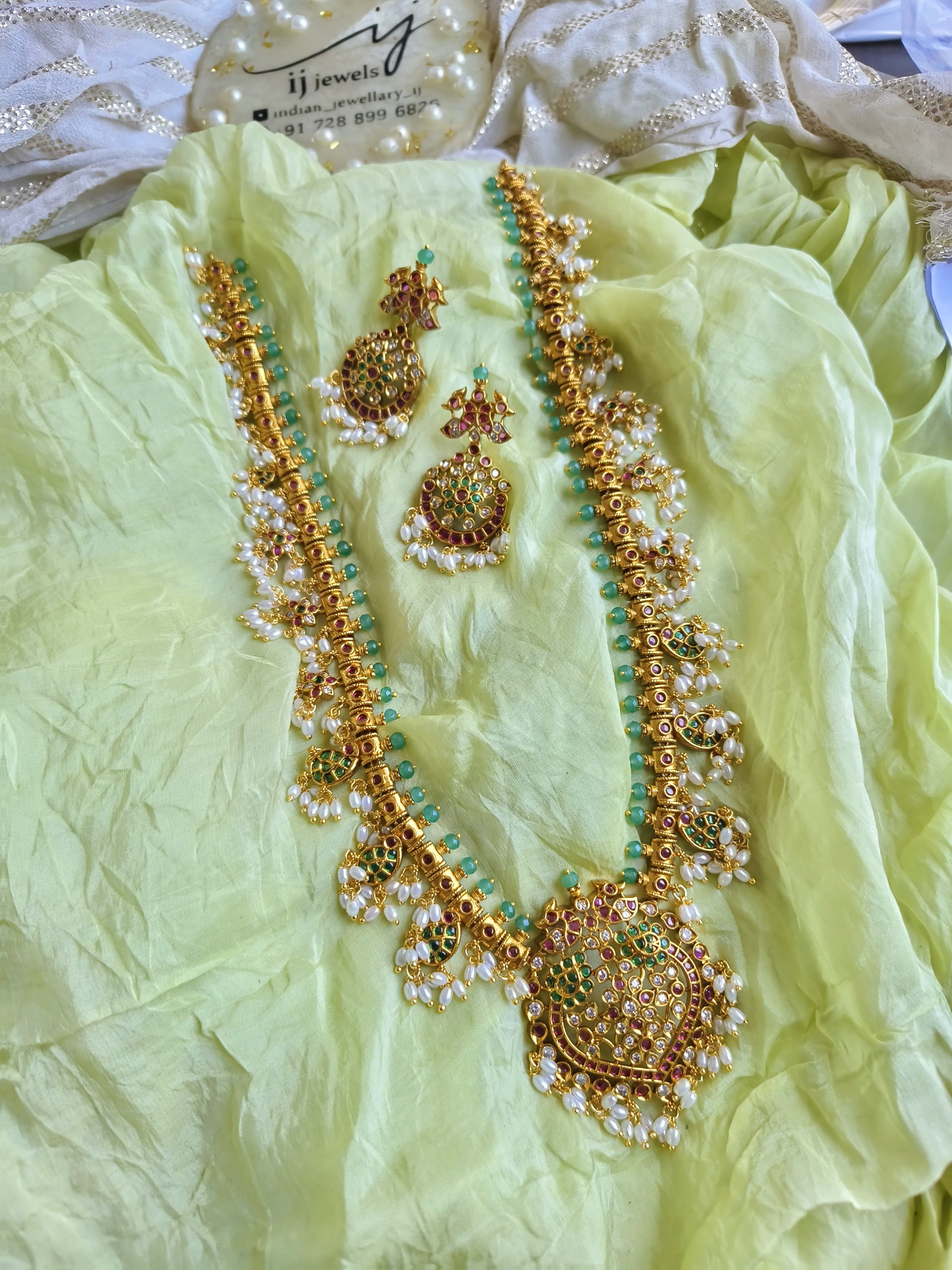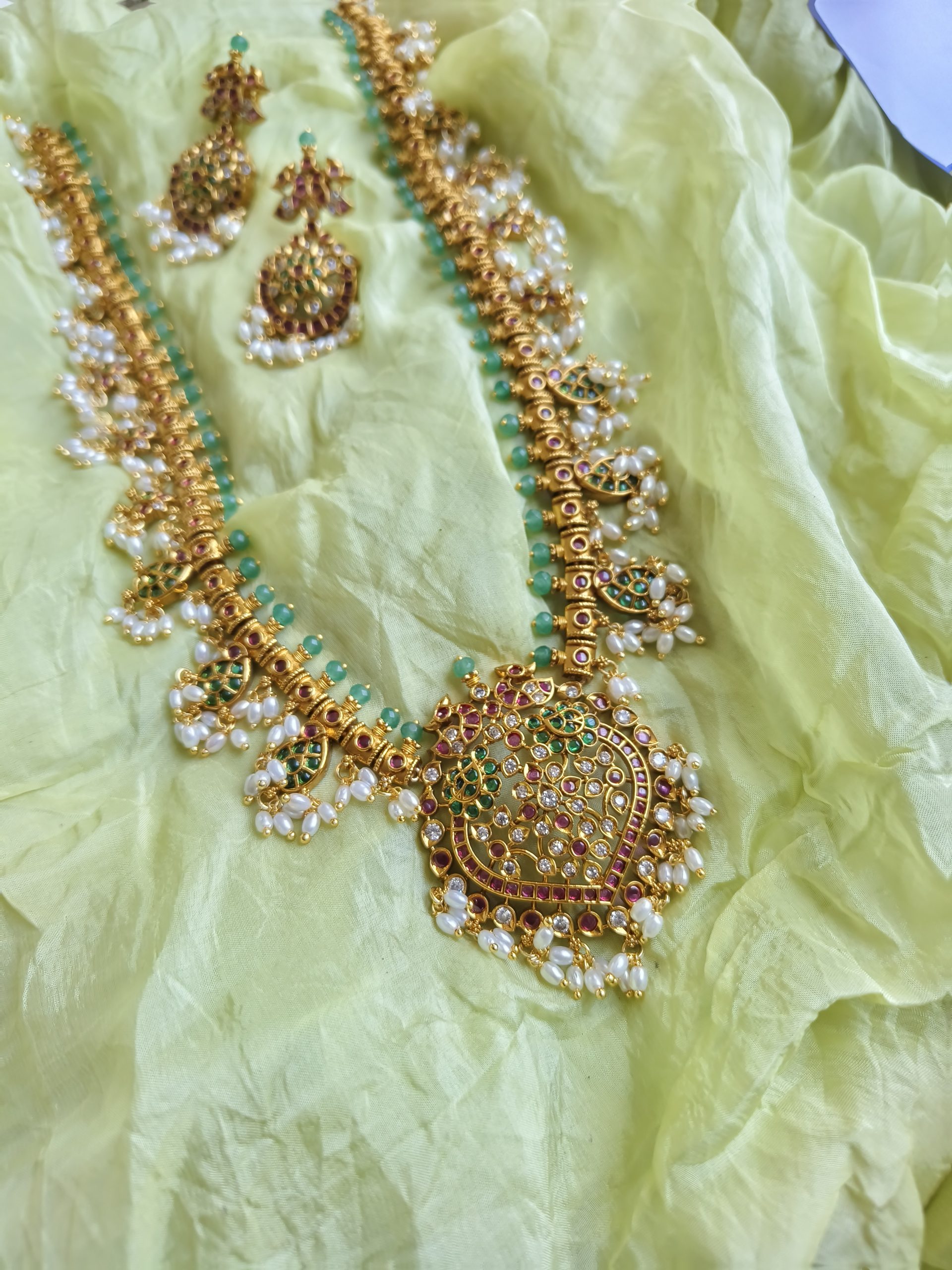 Antique Lakshmi Haram (Green Beads)