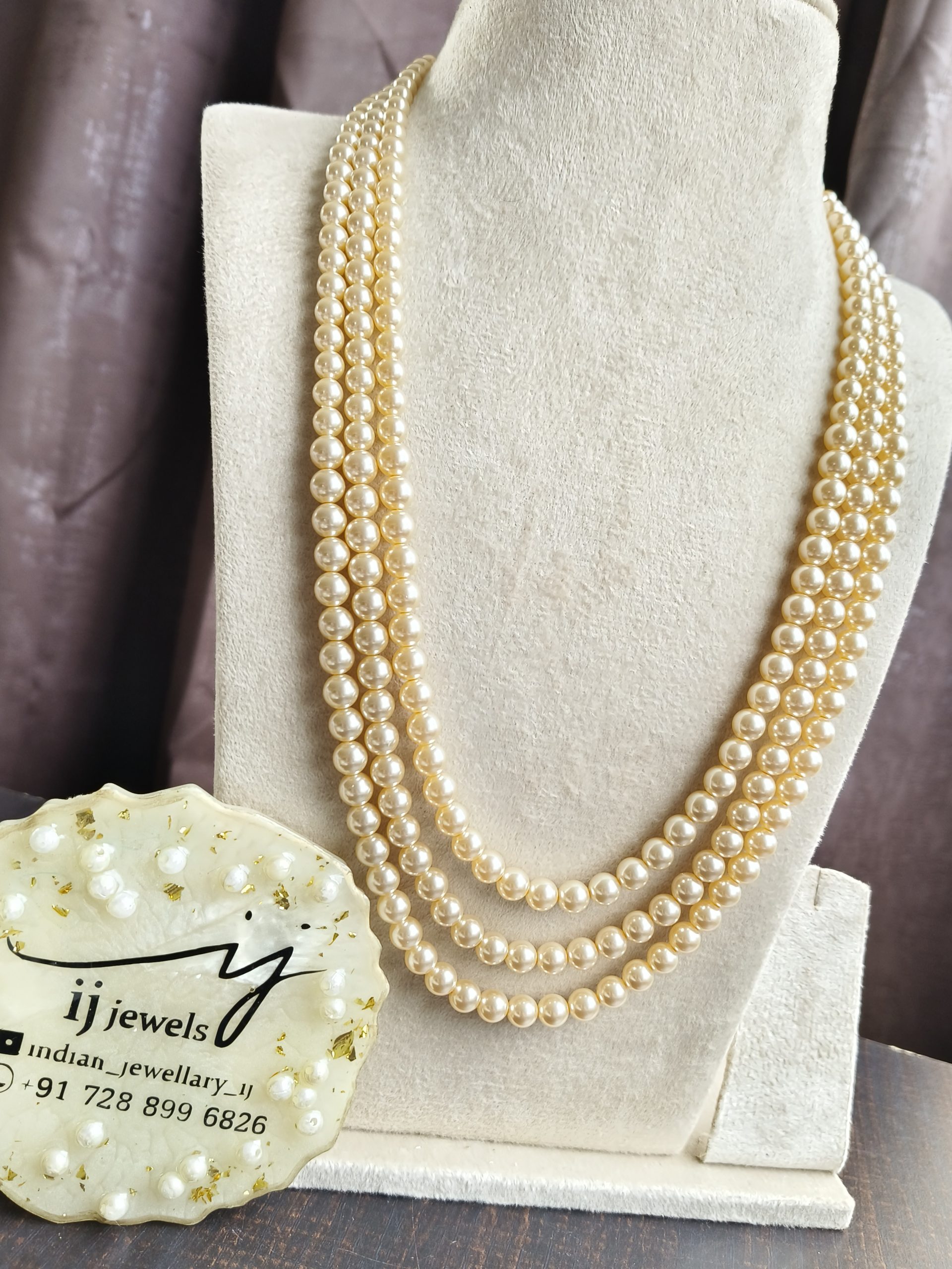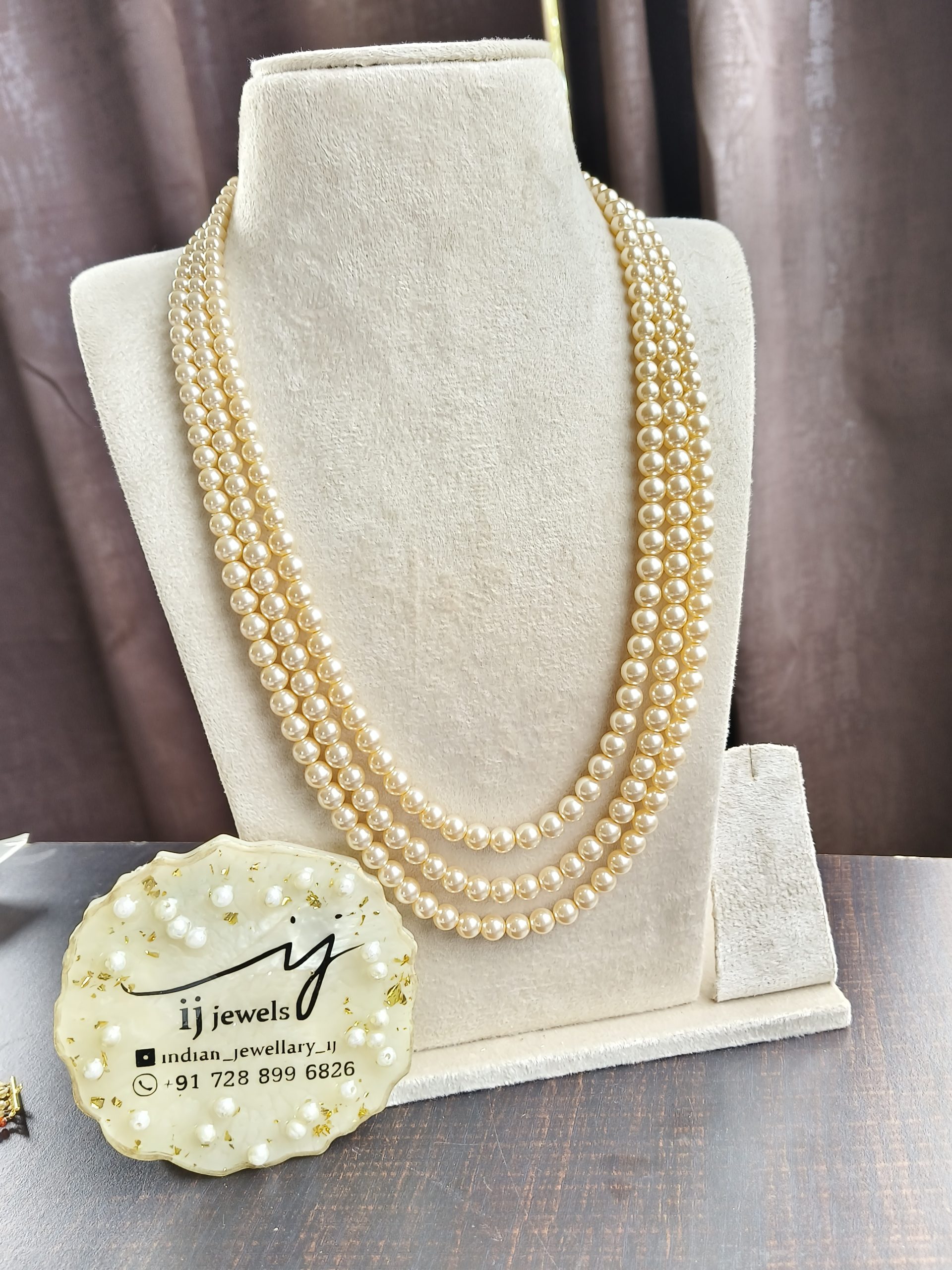 Three layer swarovkshi pearl mala (long)